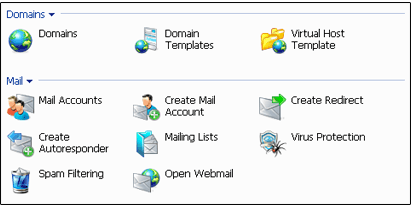 Above you can see how you can manage your domains hosting, E-Mail accounts, Mailing Lists and Webmail