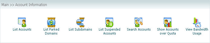 Above you can see how you can navigate through your clients account information by listing accounts, checking quota, Bandwidth usage etc.